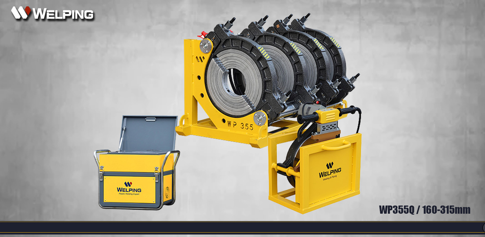 • The WP355Q CNC butt fusion machine is a multi-purpose machine that has been specifically designed to weld pipes with diameters ranging from 160mm to 355mm. It is capable of butt fusion welding pipes and fittings of all pressure levels. This butt welding machine has a small footprint and lightweight design, whilst maintaining the ruggedness and long-lasting performance expected of any welding butt fusion machine.